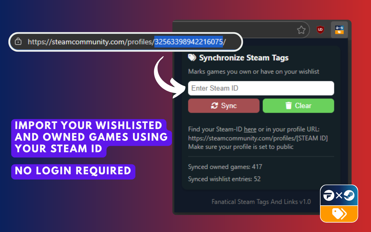 Fanatical Steam Tags And Links adds links to Steam pages and displays "Wishlist" and "Owned" tags for games on fanatical.com.